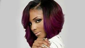 This black hair with purple highlights are very edgy/spunky, very modern, but not too loud!